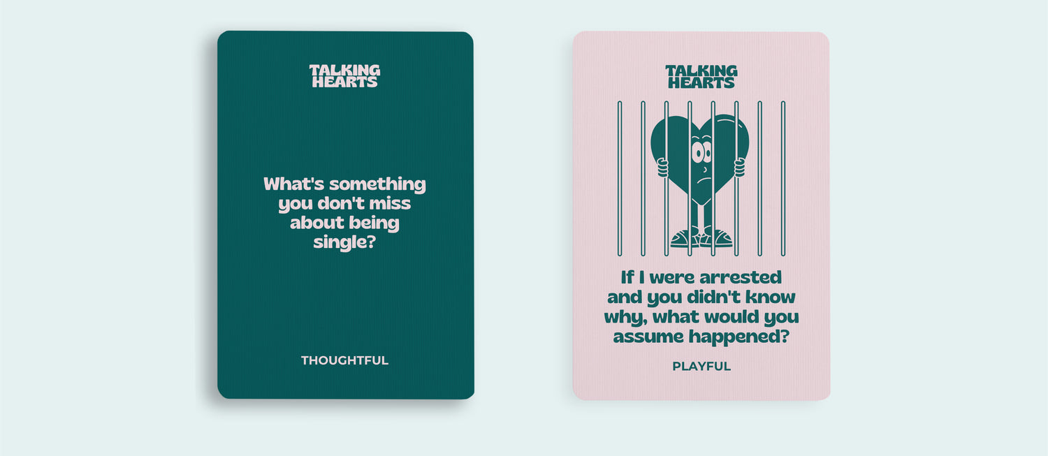 Talking Hearts is an epic conversation game for all couples. We spent the last two years crafting the most creative, fun, entertaining, and thought provoking questions.